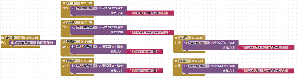 1、APP端:通过App Inventor和仿真系统设备对接,通过HTTP进行通信,实现app监控。