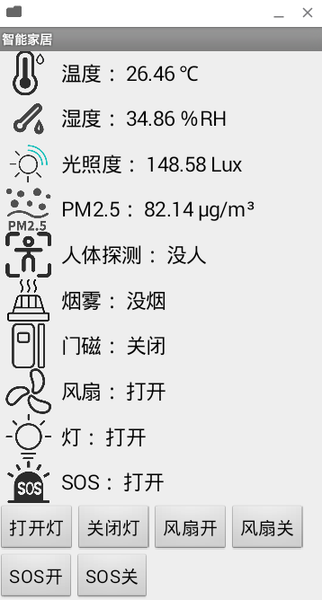 使用HTTP虚拟仿真客户端接收物联网仿真系统数据(图3),进入APP Inventor进行通信读取数据,并且可以控制。也可以添加联动,比如:到达某个时间点自动开启风扇,当触烟雾被触发时开启报警灯,可以设置几秒关闭。