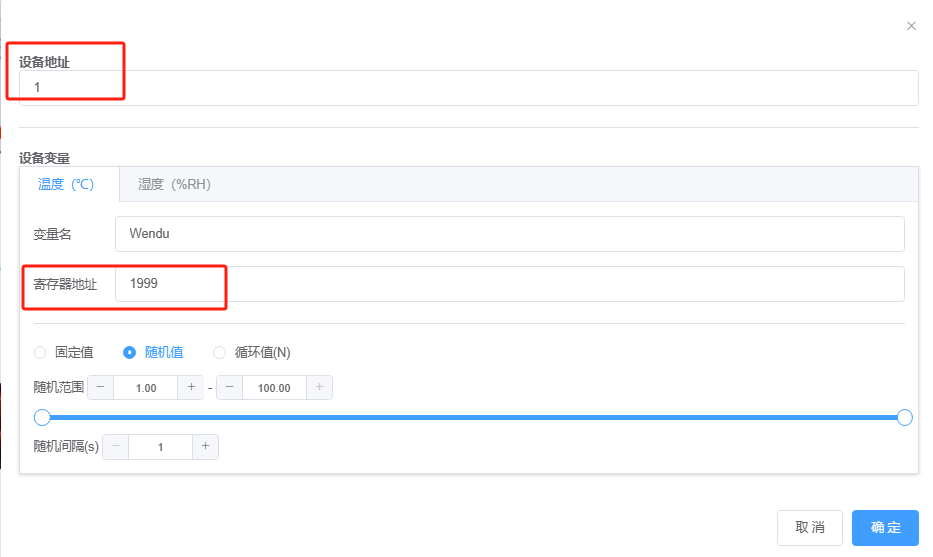物联网虚拟仿真系统接好线,同上。双击仿真设备,设定设备地址和寄存器地址(图6),打开Modbus虚拟仿真客户端,虚拟Modbus读取仿真设备数据(图7)。